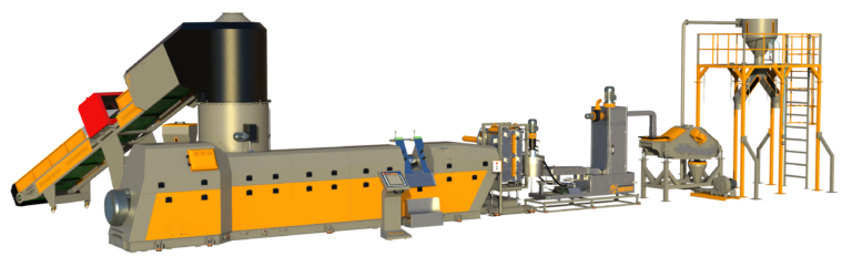 🔌 Makine Bileşenleri: Konveyör, aglomerli ekstruder, eriyik filtre, gaz alma ekstruder, granül kesme, titreşimli elek, depolama silosu.